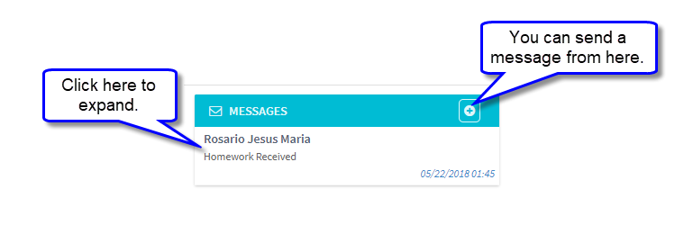 SchoolMate has an internal messaging system where you can send and receive messages to and from School Administrators, other teachers and students and their parents in the groups which you teach.