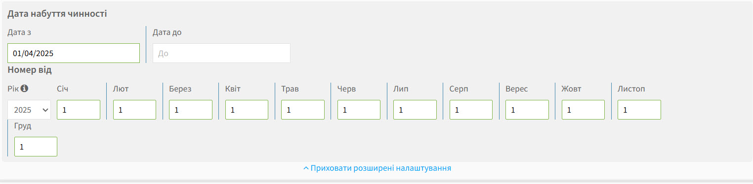 Advanced Settings – in this section we tell the system what to use in the numbering format.