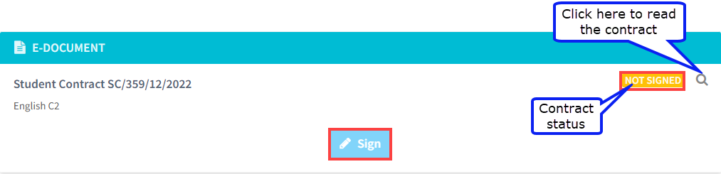 When you create a Student Contract in Documents you must mark it as an E-document: