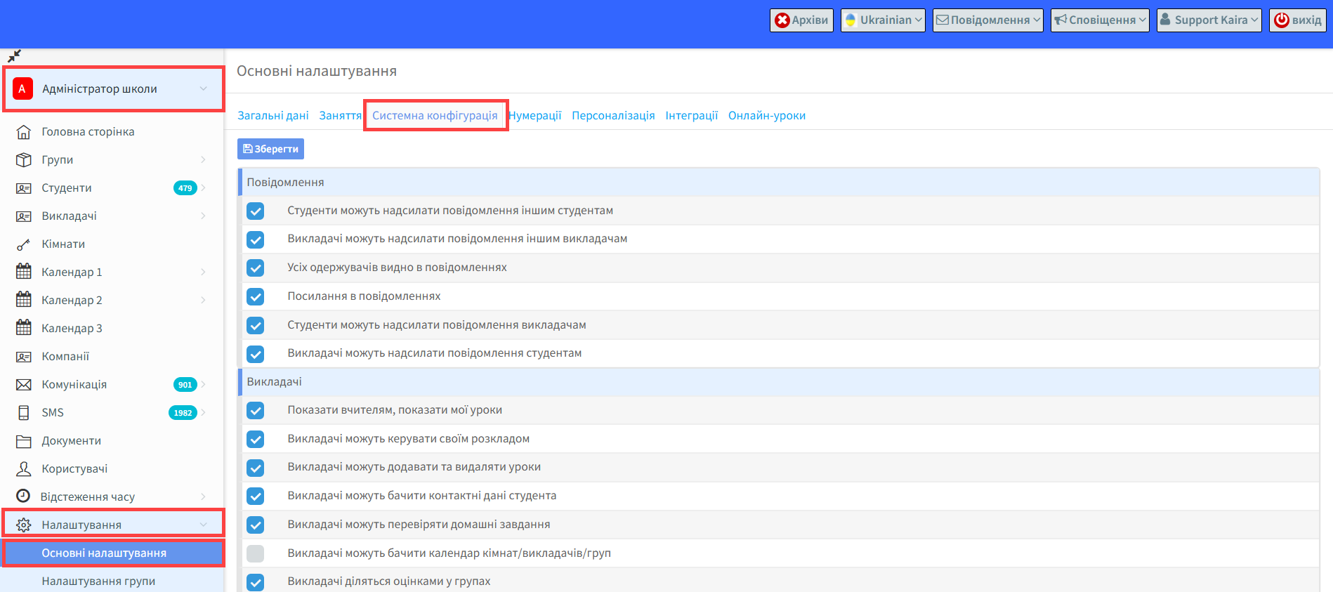 Go to School Admin – Settings – Basic Settings – System Configuration: