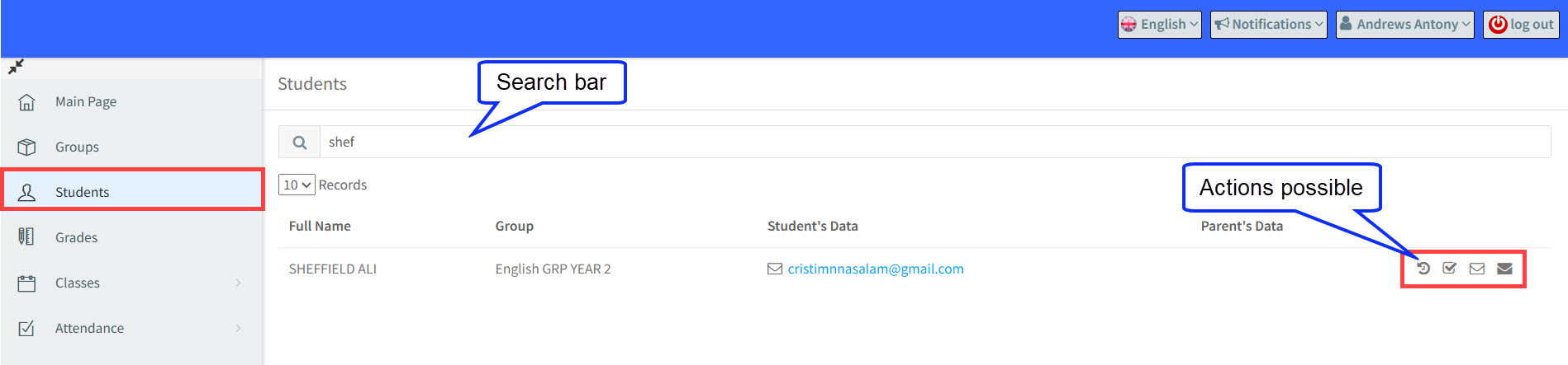 Пункт меню “Студенти” надає огляд ваших студентів.