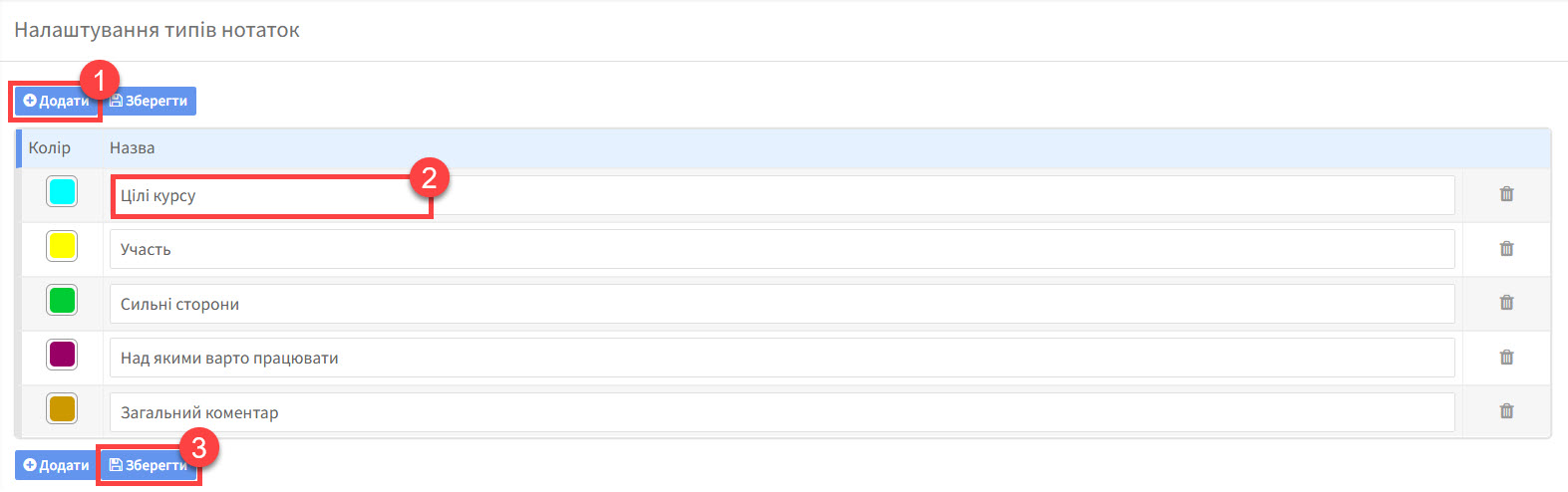 These are an assessment of individual student’s progress during a course. They can be printed out and combined with test results and mark group schemes to give a detailed report on a student. Assessments can be added by teachers or by School Admin.