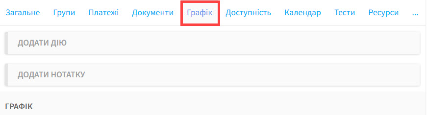 Усі завдання, які ви створюєте для студента або компанії, з’являться на їх картці “Графік”, щоб ви мали історію комунікації й т.д.